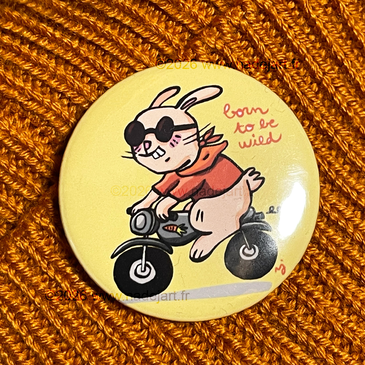 Badge lapin moto humour